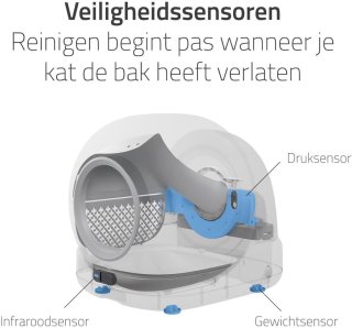 - Afvalcompartiment: 7 liter (ruimte voor ca. 2,5 kg gebruikt kattengrit)