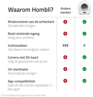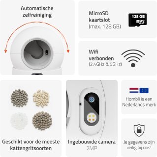 De Hombli Smart Kattenbak is perfect voor wie comfort, hygiëne en inzicht in de gezondheid van zijn kat wil combineren. Met automatische reiniging, geurcontrole, camera‑monitoring en slimme meldingen neemt deze kattenbak het zware werk uit handen — zodat jij minder hoeft te zorgen en meer kunt genieten van je kat.